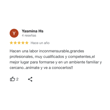 Valoración media de 4,8 estrellas en Google